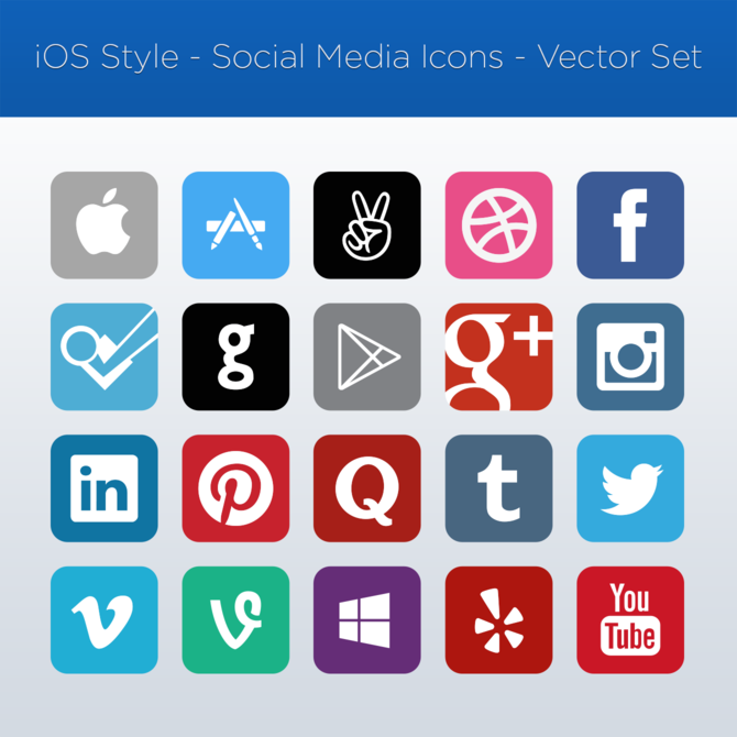 iOS Style - Social Media Icons - Vector Set